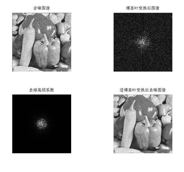 原始图像中含有噪声,因为噪声往往是细小的雪花点,属于图像高频分量,因此我们把图像首先做傅里叶变换,然后把变换后的三角函数前的系数中属于高频的部分全部去掉(置0),然后再做逆傅里叶变换,我们发现图像中的细节(噪声点)减少了。这就是频率域去噪的基本原理。