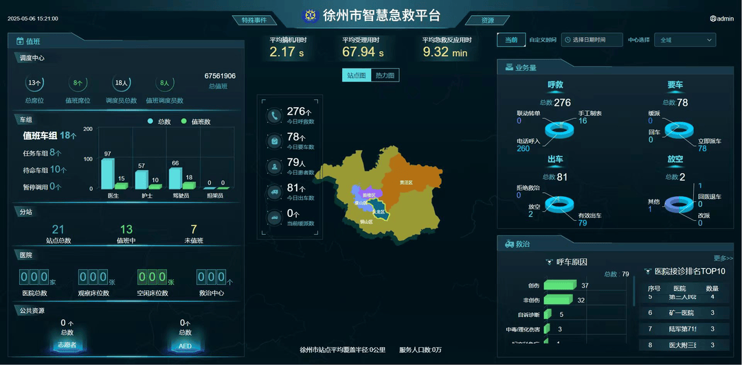 “上车即入院”模式无疑在急危重症抢救中发挥着高效协同与关键作用。不仅如此,近年来,徐州市120秉持“人民至上、生命至上”的理念,坚持“以患者为中心”,分别结合院前、院中、院后,对呼救、响应、调度、急救、进院等环节进行全流程的设计,先后安装了“手机呼叫即定位、聋哑人无障碍呼救平台、视频呼救(0516-120)、大数据生命支持系统CALLS、智慧化派车、5G智慧上车即入院”等程序和软件,基本实现“呼叫即定位、呼救即抢救、上车即入院、下车可溯源”。