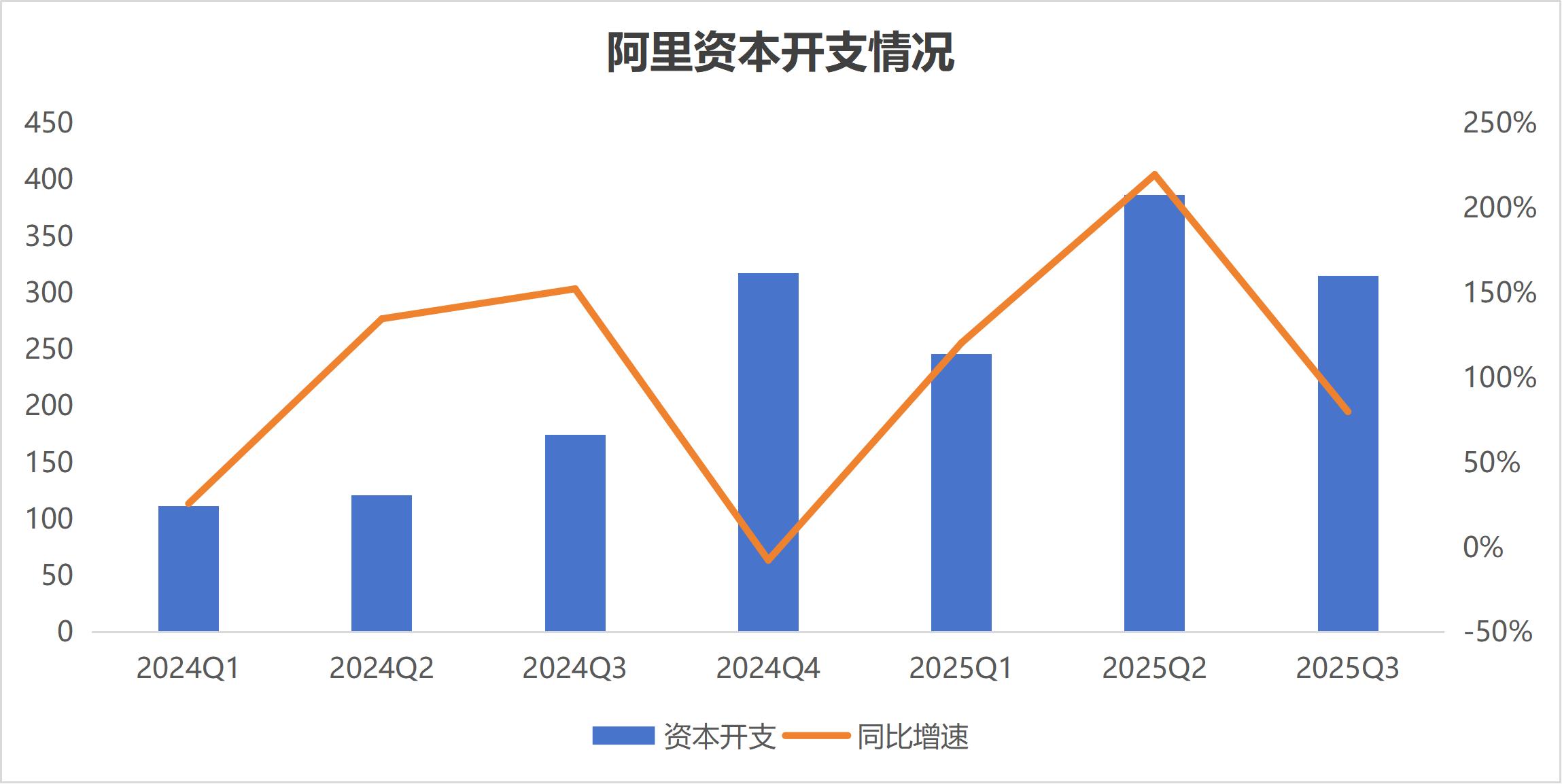 三季度,阿里资本开支达315.01亿元,同比增长80.1%。今年前三季度阿里总资本开支为947.89亿元,同比大增132.7%。