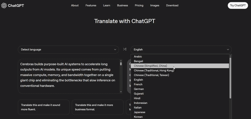 。乍一看,它与谷歌翻译等传统翻译工具颇为类似。真正将二者区分开来的,可能是翻译后ChatGPT Translate提供的交互与个性化调整能力。
