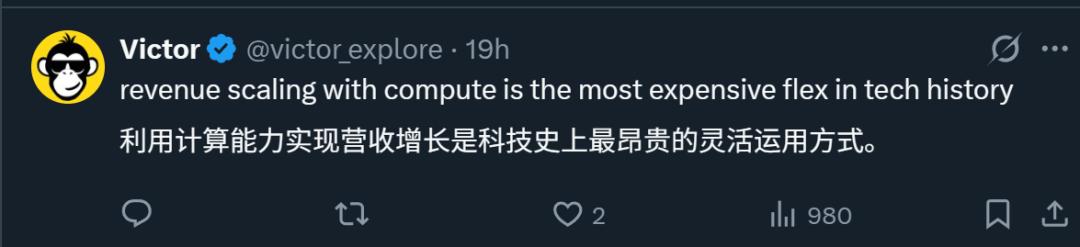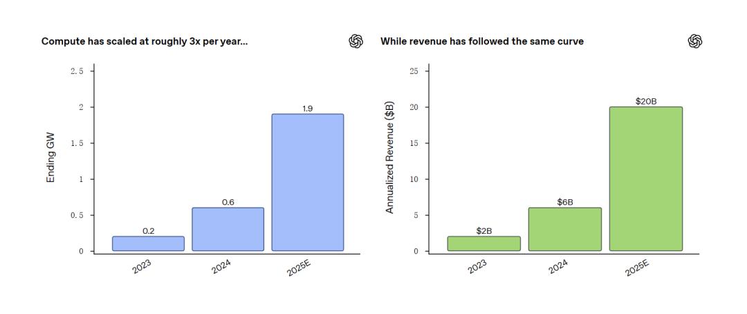 算力投资推动研究和模型能力跃升,强大的模型带来更好的产品和更广泛的采用,进而推动收入增长,收入再支撑下一轮算力投入和创新。这个循环不断强化。
