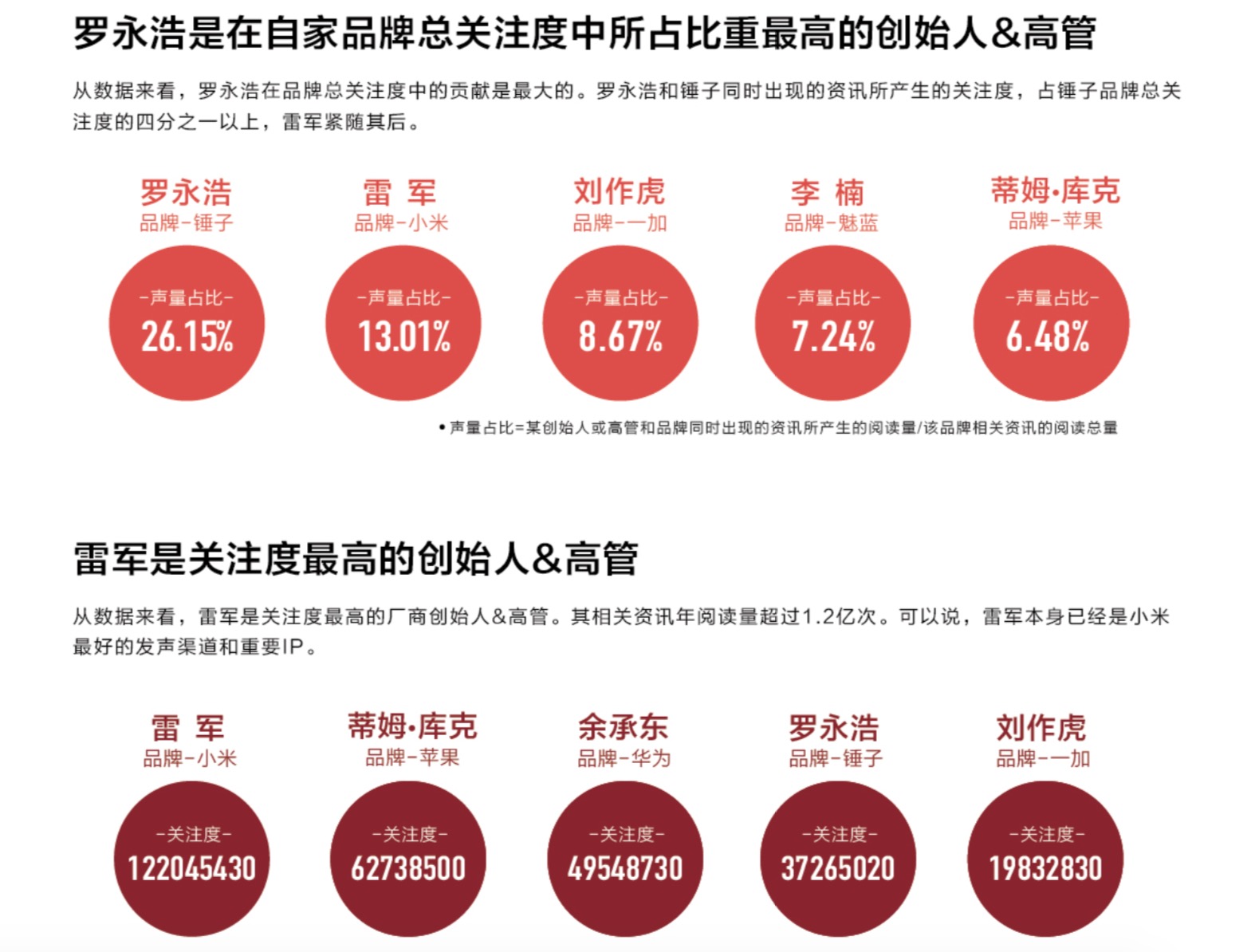 企业家个人流量和一场发布会,仅仅只能支撑一小段时间(1周或是1个月)内的用户购买力,长久的购买力,还是需要机械、重复的市场活动来完成。而且,企业家的个人IP只是在小部分人群有效,最终还是很难在大众市场,转化为销量。OPPO、vivo的明星营销相对于企业家营销来说,的确很难评价说这是种无脑的做法。但企业家营销的策略,对于预算不足的企业来说,的确可以起到四两拨千斤的效果。