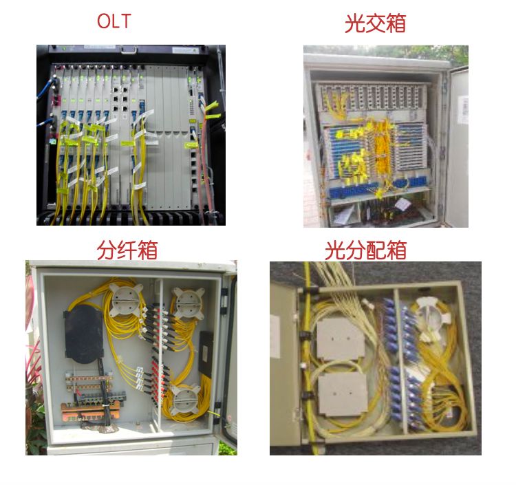 OLT机房和ONU之间的网络称为ODN(Optical Distribution Network)光配线网,光配线网由光交接箱、光接头盒、光配线箱、光缆等多种设备组成,在OLT和ONU之间提供传输通道。