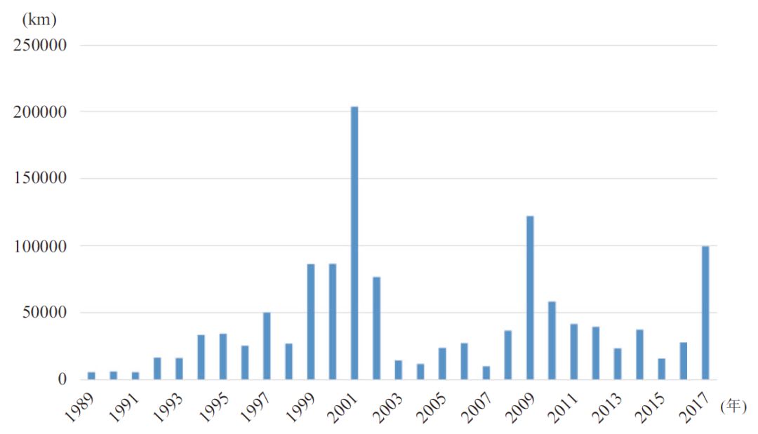图2 海底光缆部署距离(数据来源:Submarine Telecoms Forum)