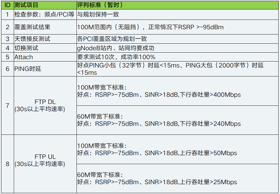 业务优化:完成各项基本业务指标的提升,保障正常的接入、切换、上传、下载速率、语音呼叫业务正常。