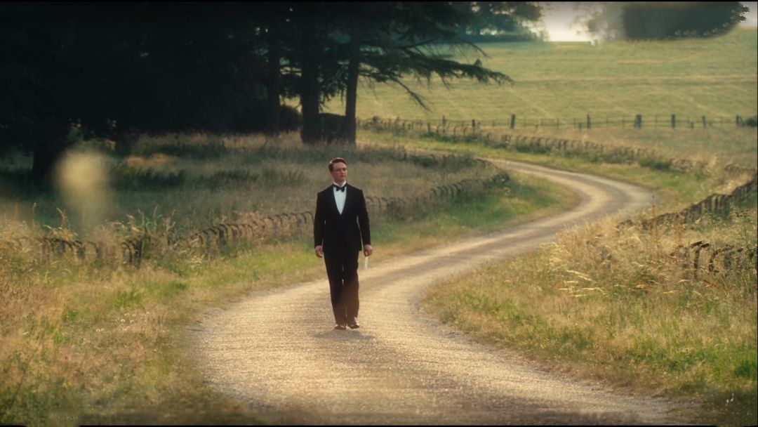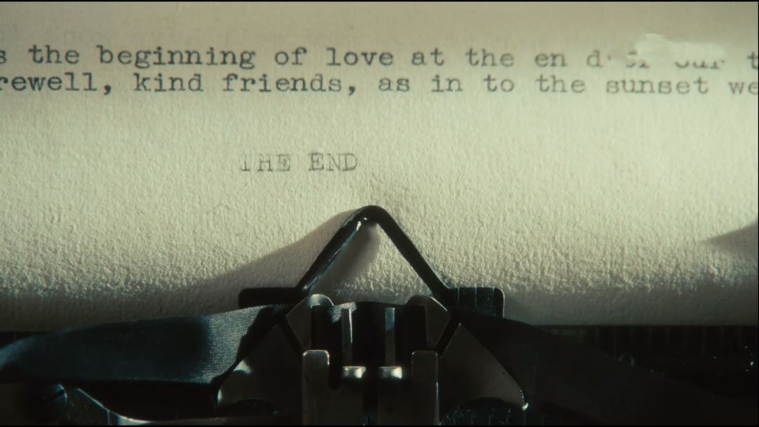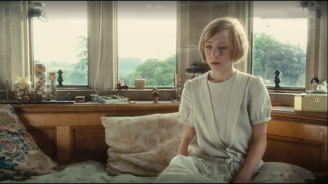 电影以打字机的滴答声和布里奥妮(Briony)坐在阁楼上打字为背景开始,镜头慢慢转换到稿纸上, The end 随即敲下,预示着下一幕的开始。小姑娘拿起打好的稿纸,径直走出门去,步调很快,内心的激动犹然可知。钢琴开始弹奏,乐声急促——表征布里奥妮(Briony)内心急迫,迫不及待要找人分享自己的创作,得到她人的认可。