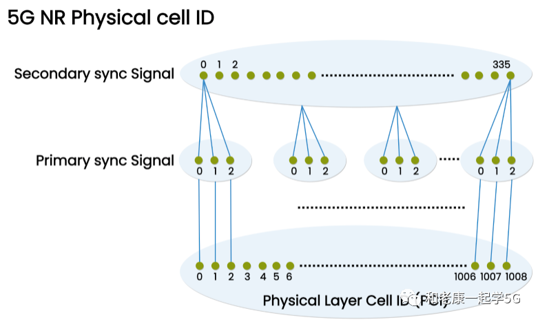 SS提供的无线帧边界,SSS提供的子帧边界;同时使用 PSS和SSS的PCI信息为识别小区提供一个唯一值;其值来源于PSS和SSS。PSS的值为0,1和2。SSS的值介于0和335之间。5G技术中共有1008个PCI 可用。1008个PCI被分成336个唯一的PCI组,每组由三个不同的身份组成。5G(NR)的PCI规划与 LTE的PCI规划非常相似;5G(NR)的PCI是LTE技术的两倍。kangguoying202110