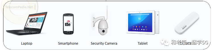 在移动通信系统中的2G/3G/4G的用户设备(UE)与基站(BTS)不同,用户终端设备(UE)是最终用户直接用于通信的任何设备。它们可以是移动电话、配备数据卡的便携式计算机或任何其他设备。这些设备通过无线空口连接到基站BTS/NodeB/eNodeB/gNnodeB。