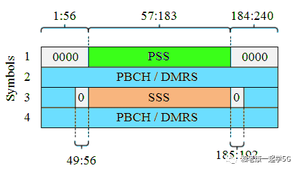 图4.5G中的SSB结构因此如果相邻小区的(小区 ID)模4相同,则两个小区PBCH-DMRS可能会发生冲突,这将会导致PBCH解码失败。