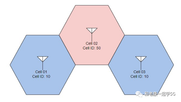 图2.邻区小区PCI相同 虽然小区01和03不是邻区,但它们会在切换时给小区02造成混乱;因为每当一个小区将终端(UE)切换到另一个小区时,两个小区都会交换大量信息。