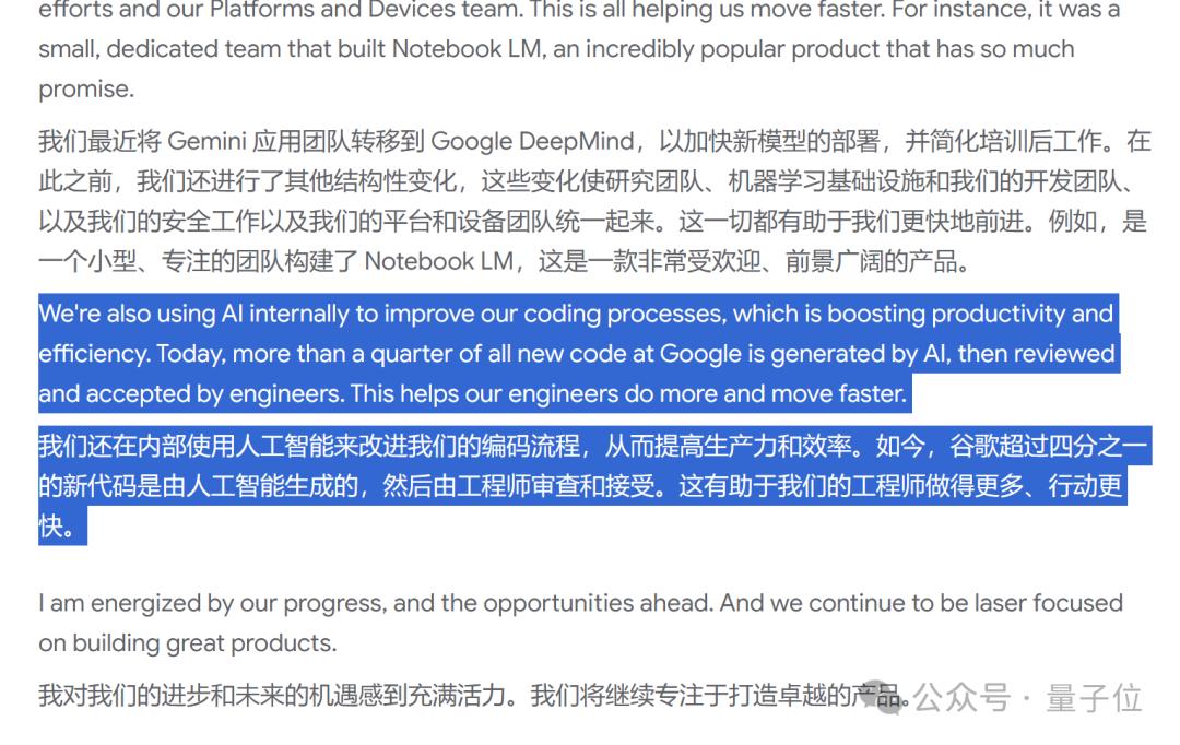 谷歌超25%新代码由AI生成,然后由工程师审查通过。