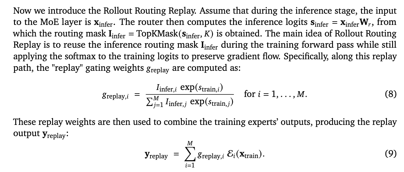 ,确保训练重放期间使用的专家与推理期间选择的专家相匹配,从而消除专家选择中的不匹配;二是