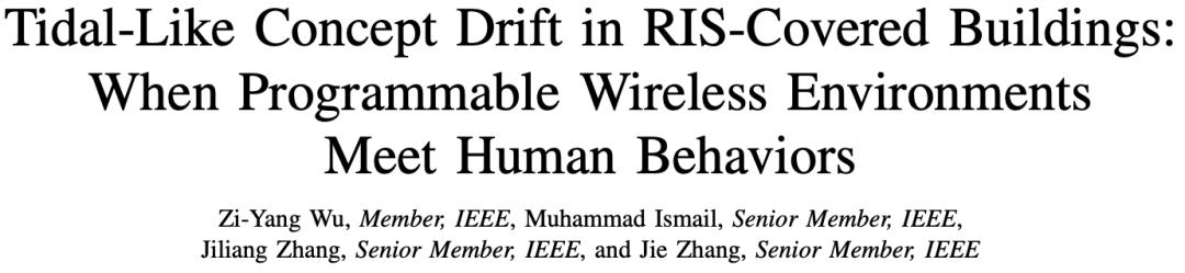 [4] Zi-Yang Wu, Muhammad Ismail, Jiliang Zhang, and Jie Zhang, "Tidal-Like Concept Drift in RIS-Covered Buildings: When Programmable Wireless Environments Meet Human Behaviors," in IEEE Wireless Communications, accepted, 2025, doi: 10.1109/MWC.2025.3600792 (https://arxiv.org/abs/2507.14876)
