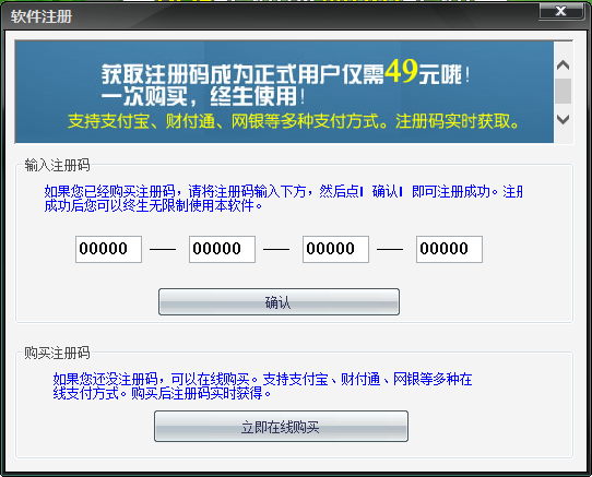 软件运行进入之后! 直接在输入注册码的地方点击进入!全部填写0000000000000000000000000注册就OK。