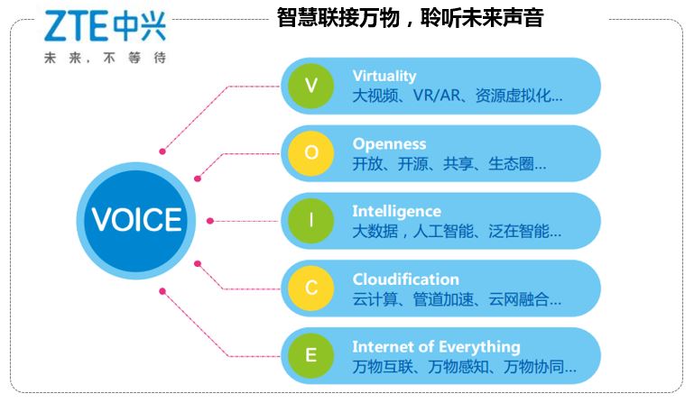 2016年8月中兴通讯发布了信息通信业趋势研究报告《VOICE of Future》,详细阐述了信息通信业未来发展的五大趋势:
